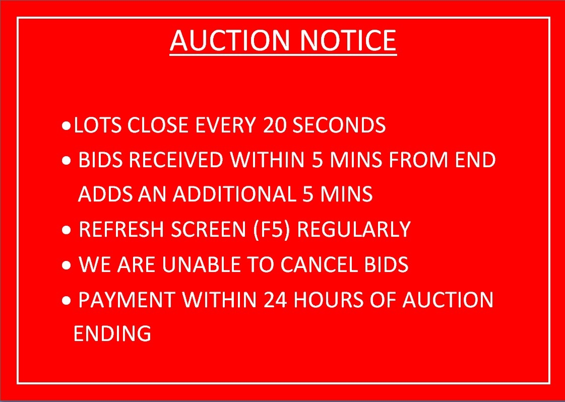 • Collection Deadline: All lots must be collected within 4 working days of auction ending.