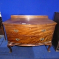 A vintage mahogany bow front chest of two drawers on cabriol...