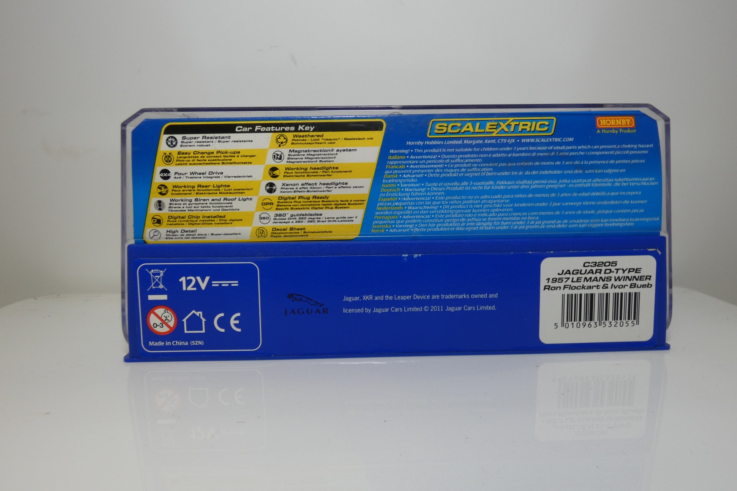 1 x Scalextric Jaguar D-Type 1957 C3205 slot car - Please note this car is missing a headlight