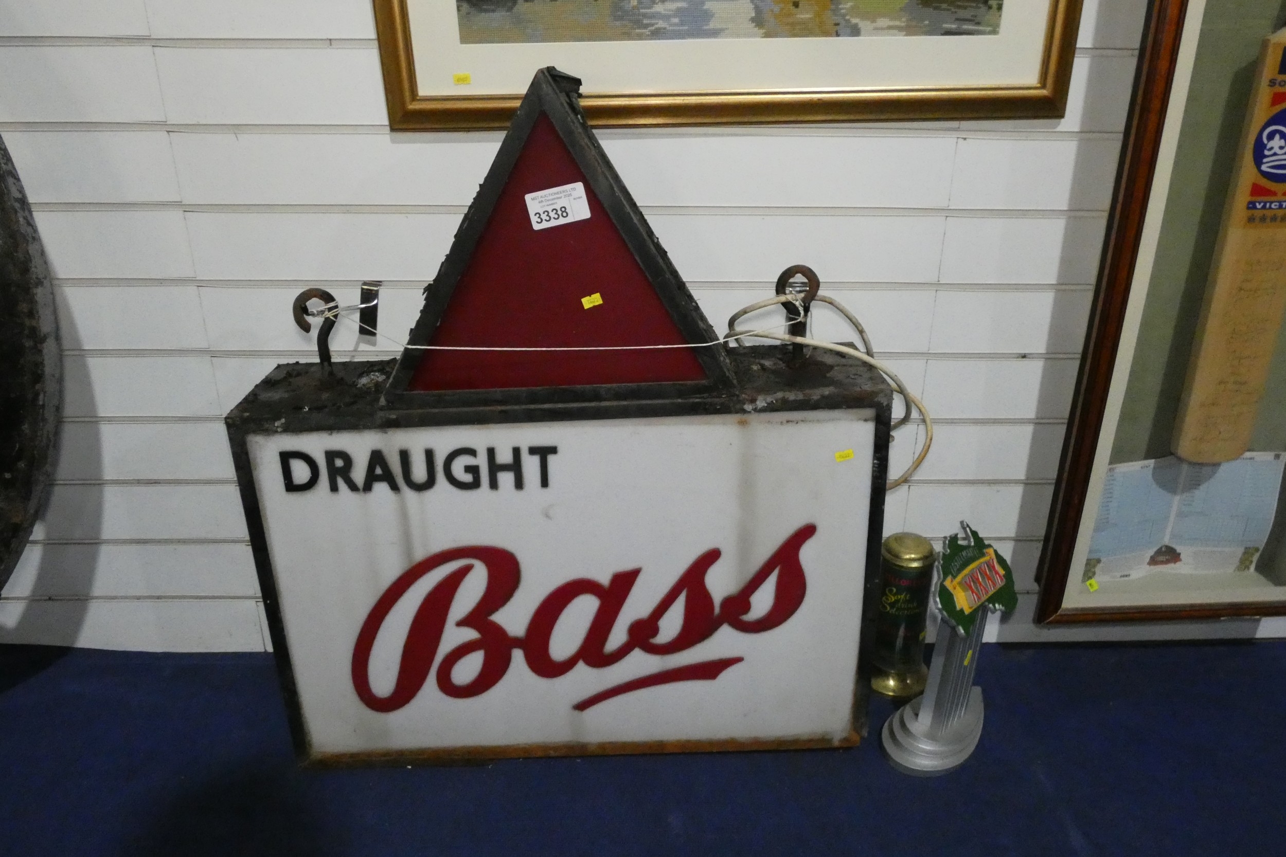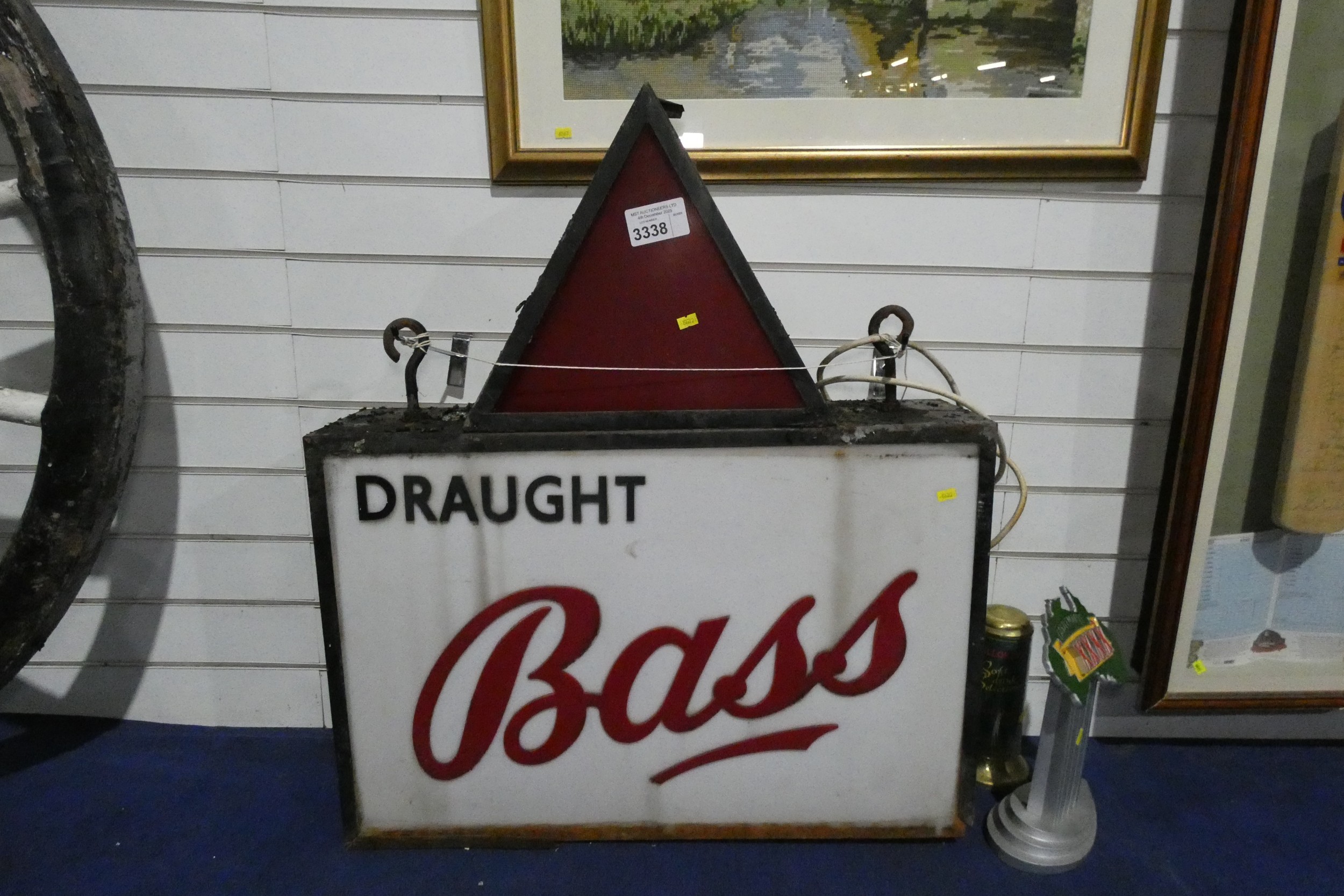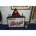 A vintage hanging draught Bass illuminated pub sign and two ...
