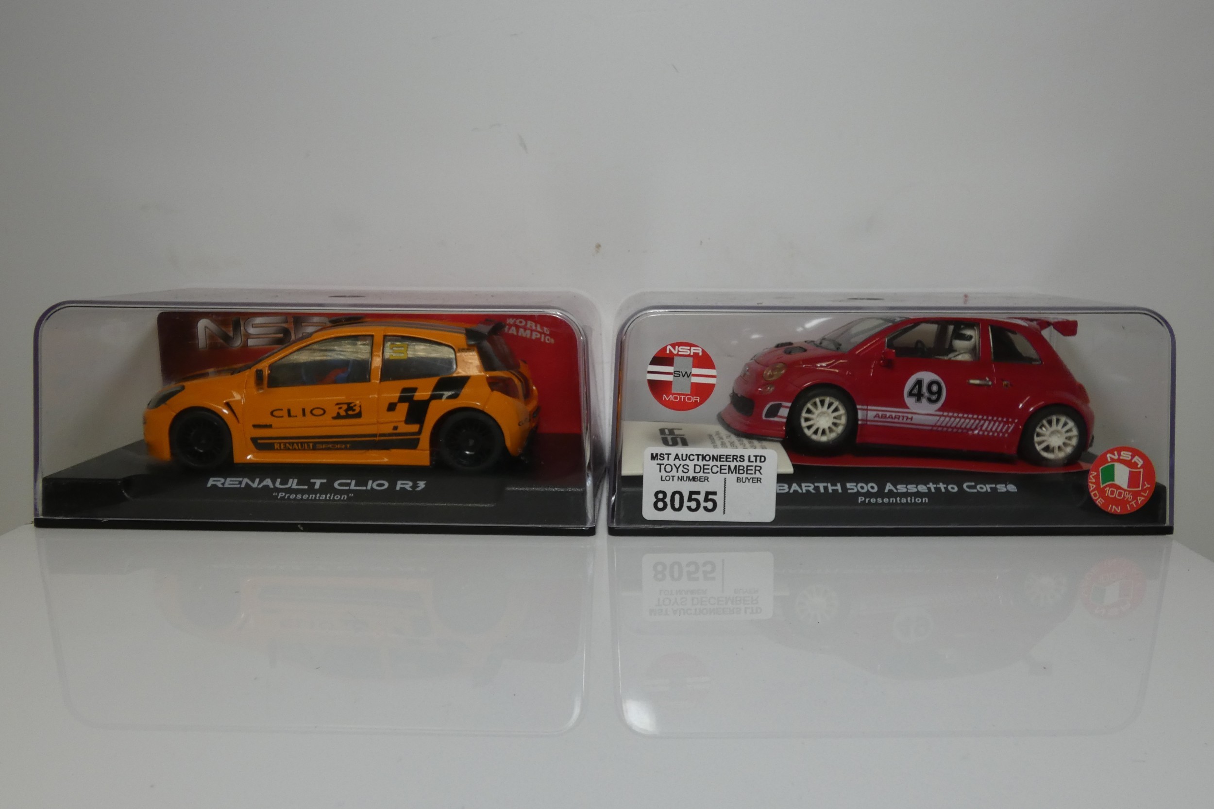 2 x NSR slot cars - 1 x Renault Clio R3 and 1 x Abarth 500 A...
