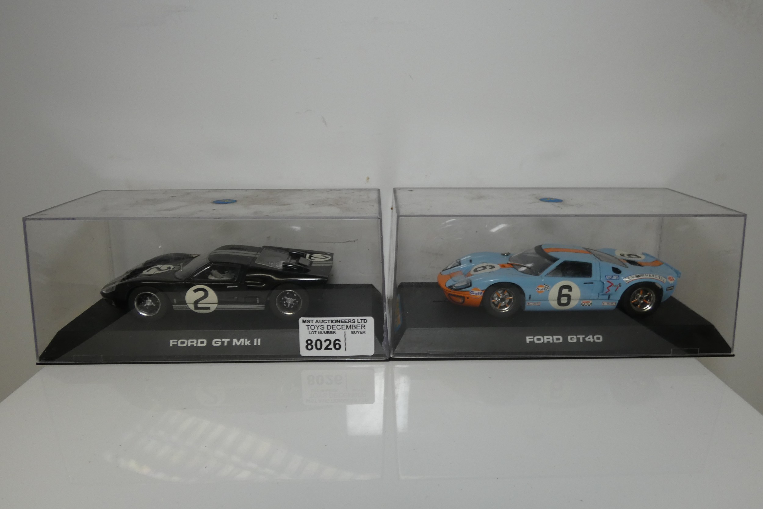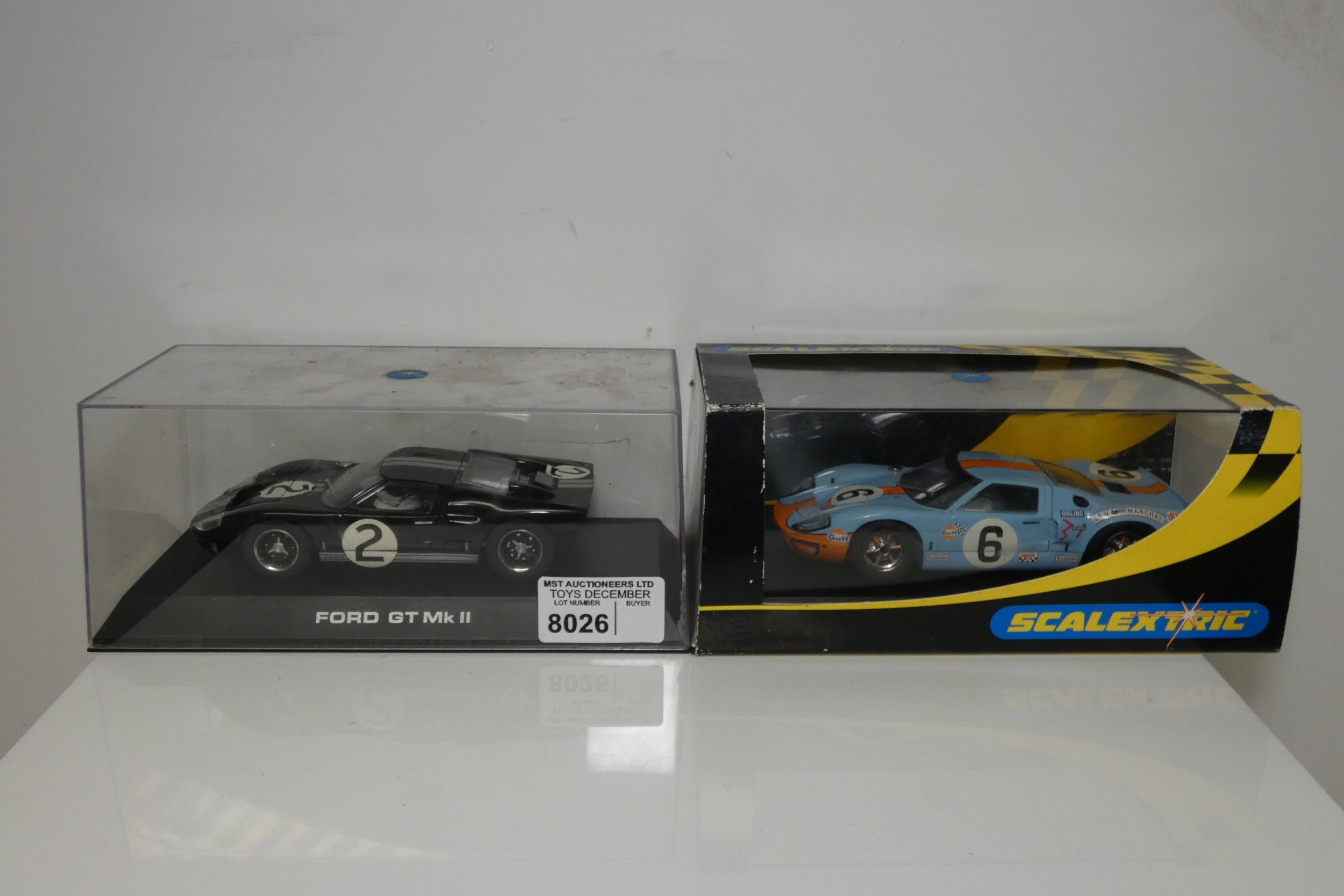 2 x Scalextric slot cars - 1 x Ford GT Mk2 and 1 x Ford GT40...