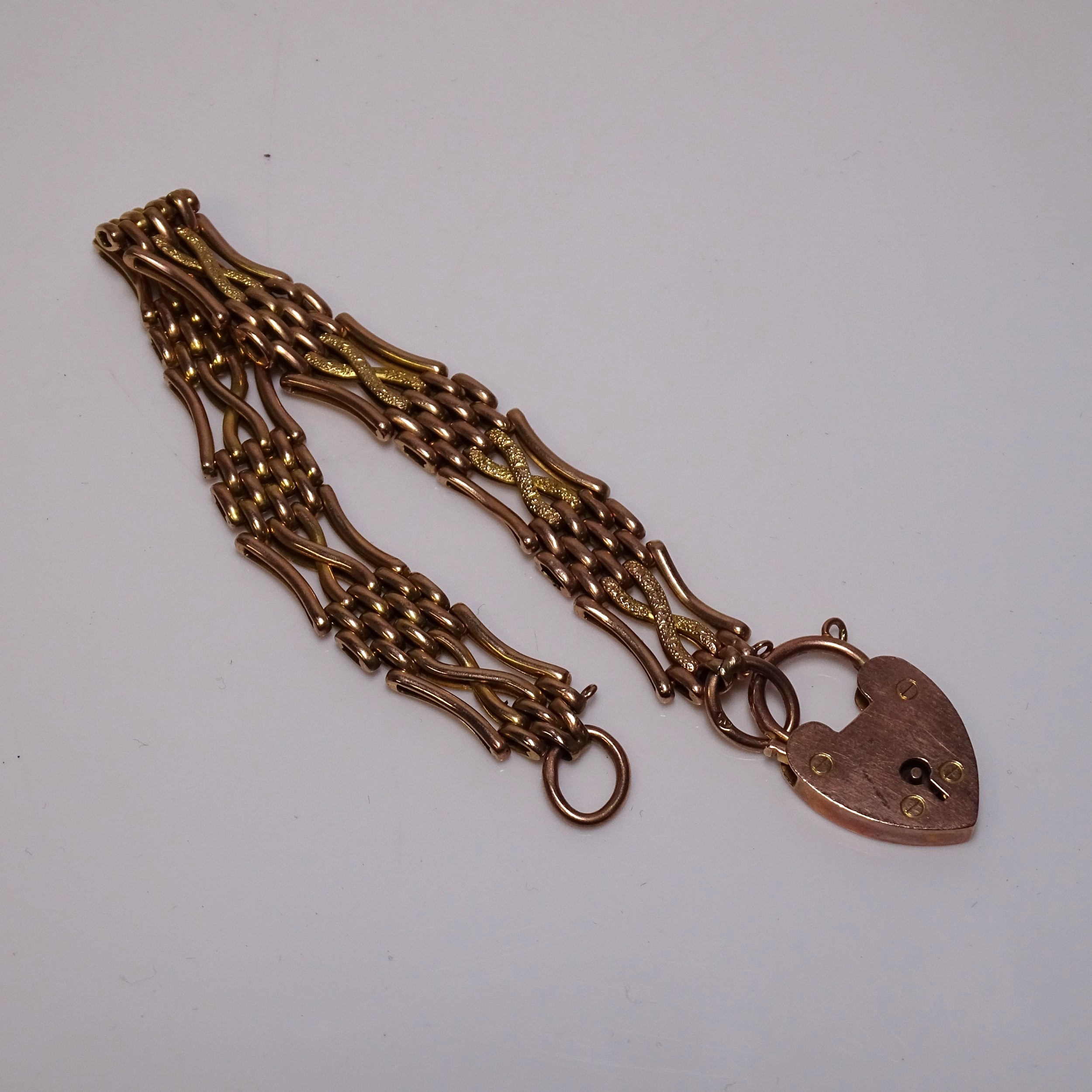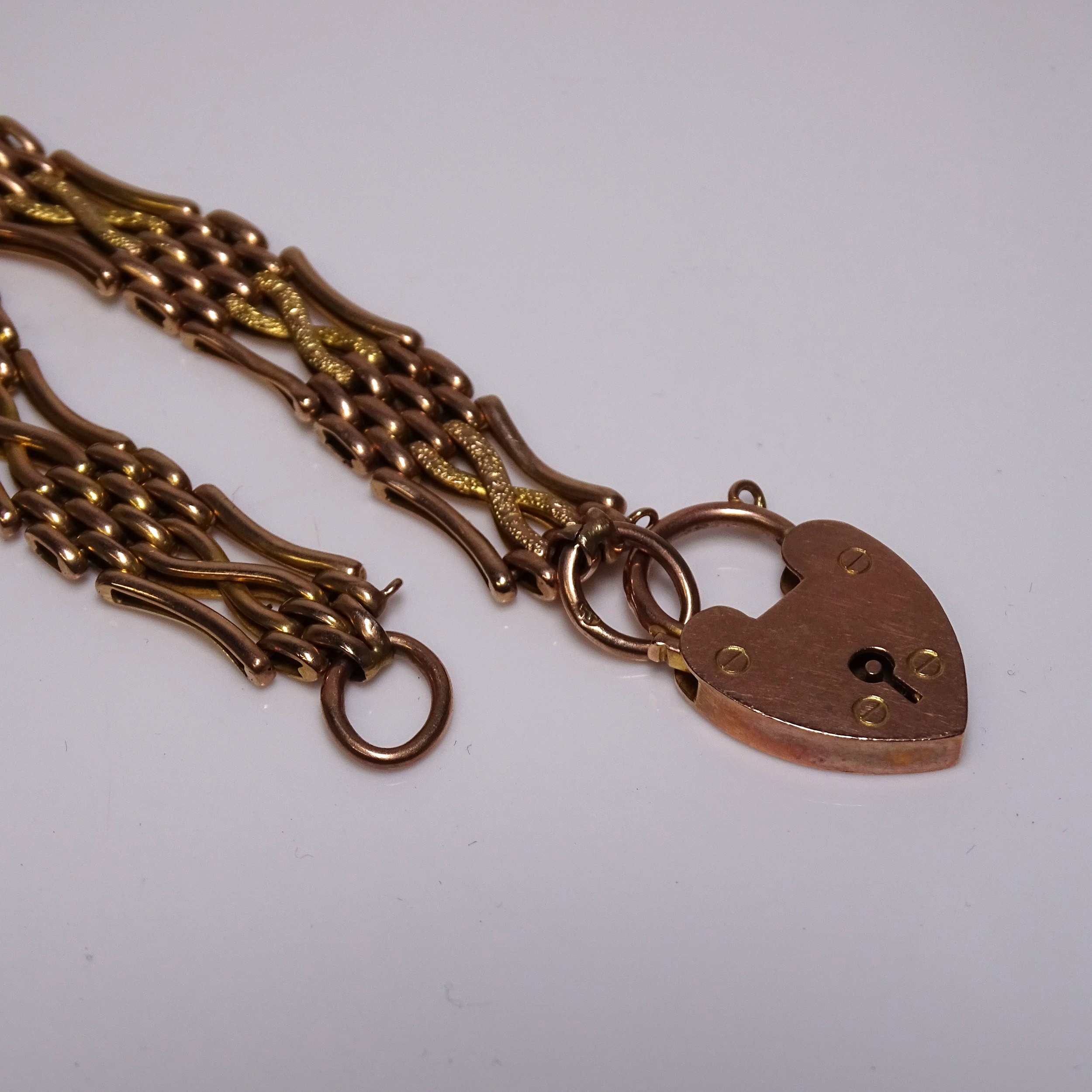 A 9 carat gold link bracelet with a heart-shaped clasp, weight approximately 13 grams