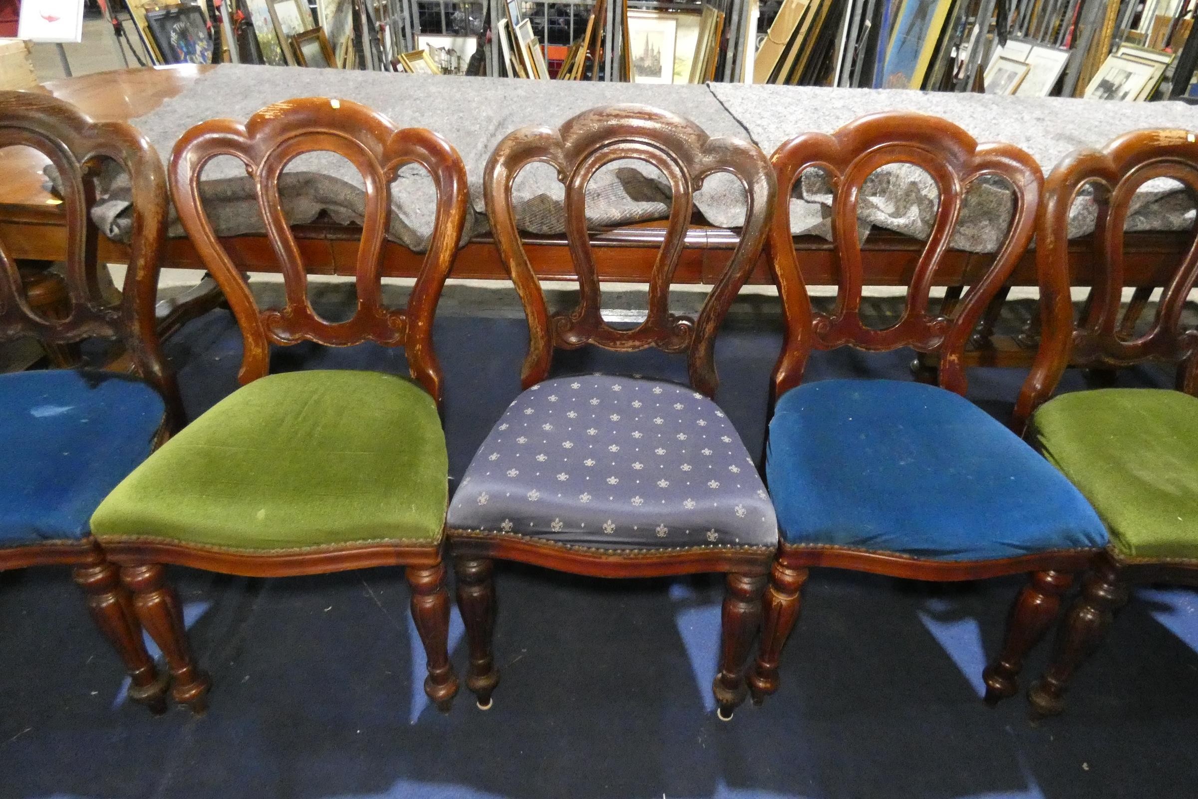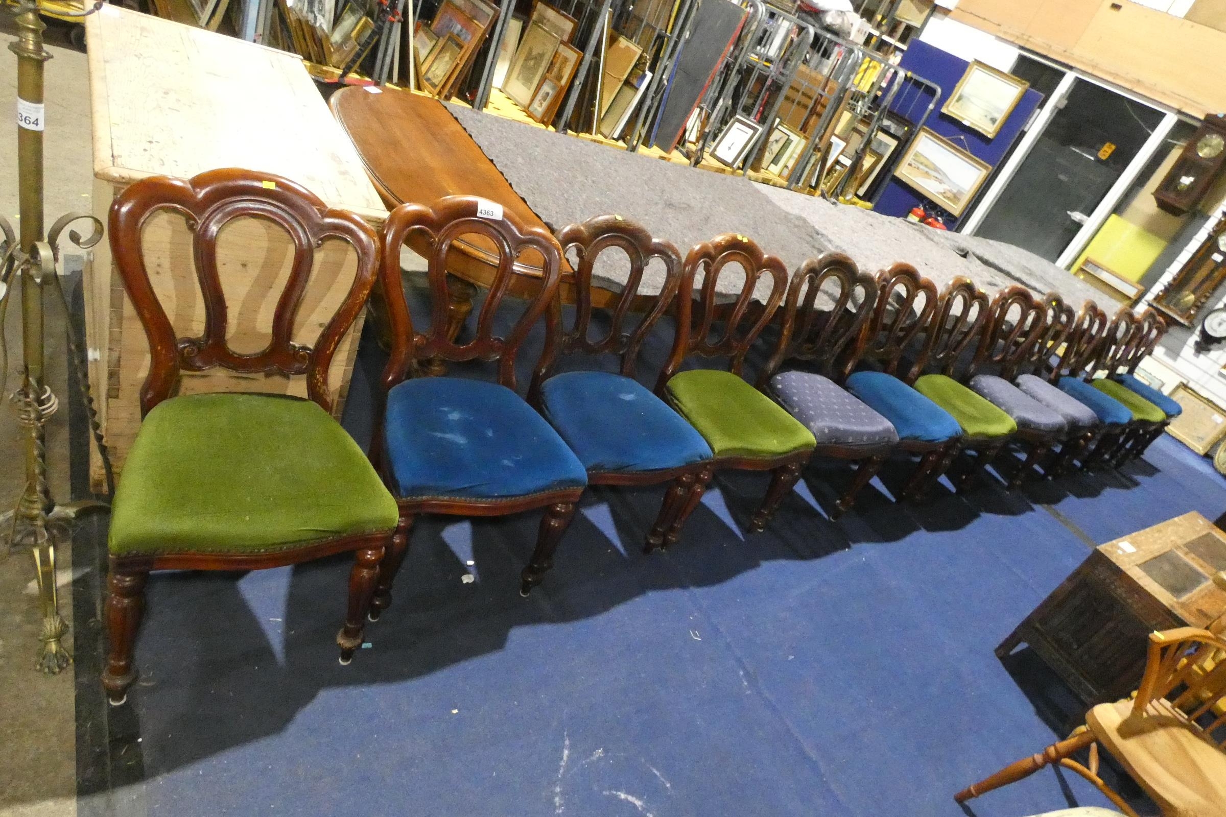 A set of 12 Victorian mahogany shaped back dining chairs wit...