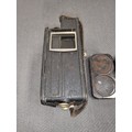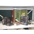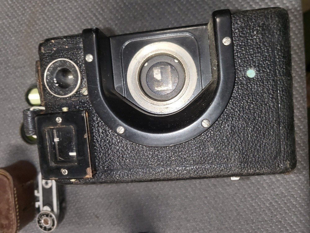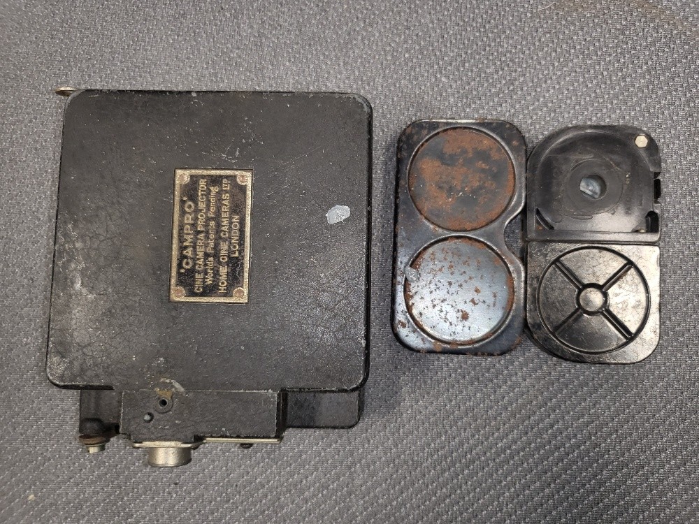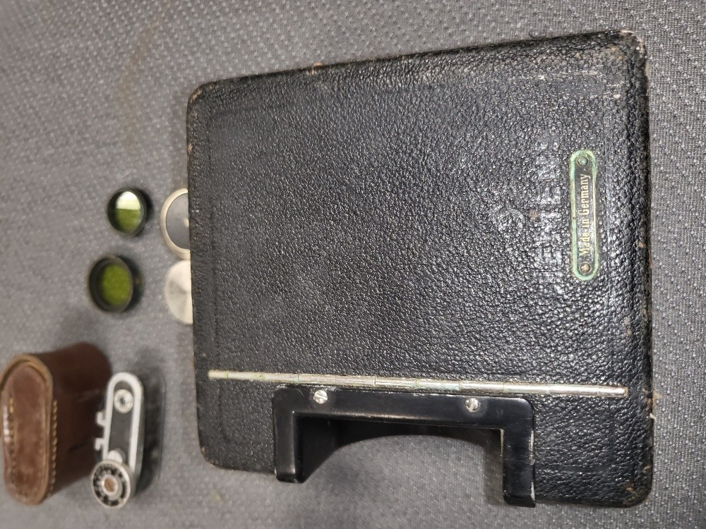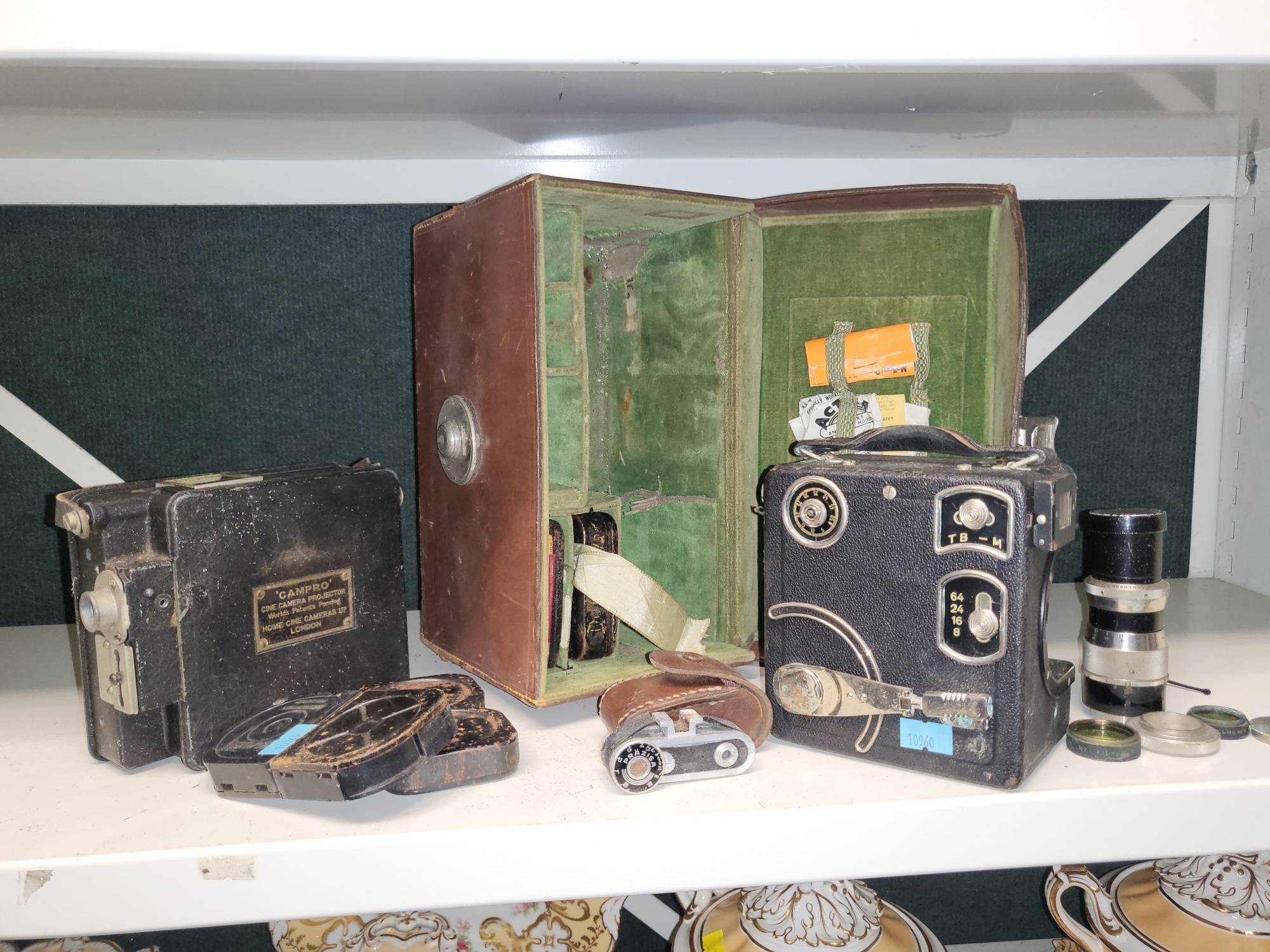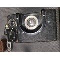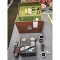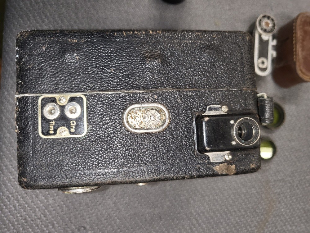 A Vintage Siemans 16mm Clockwork magazine Cine camera, with it original leather box and various accessories. Also a Campo Combined Cine camera/projector circa 1930s