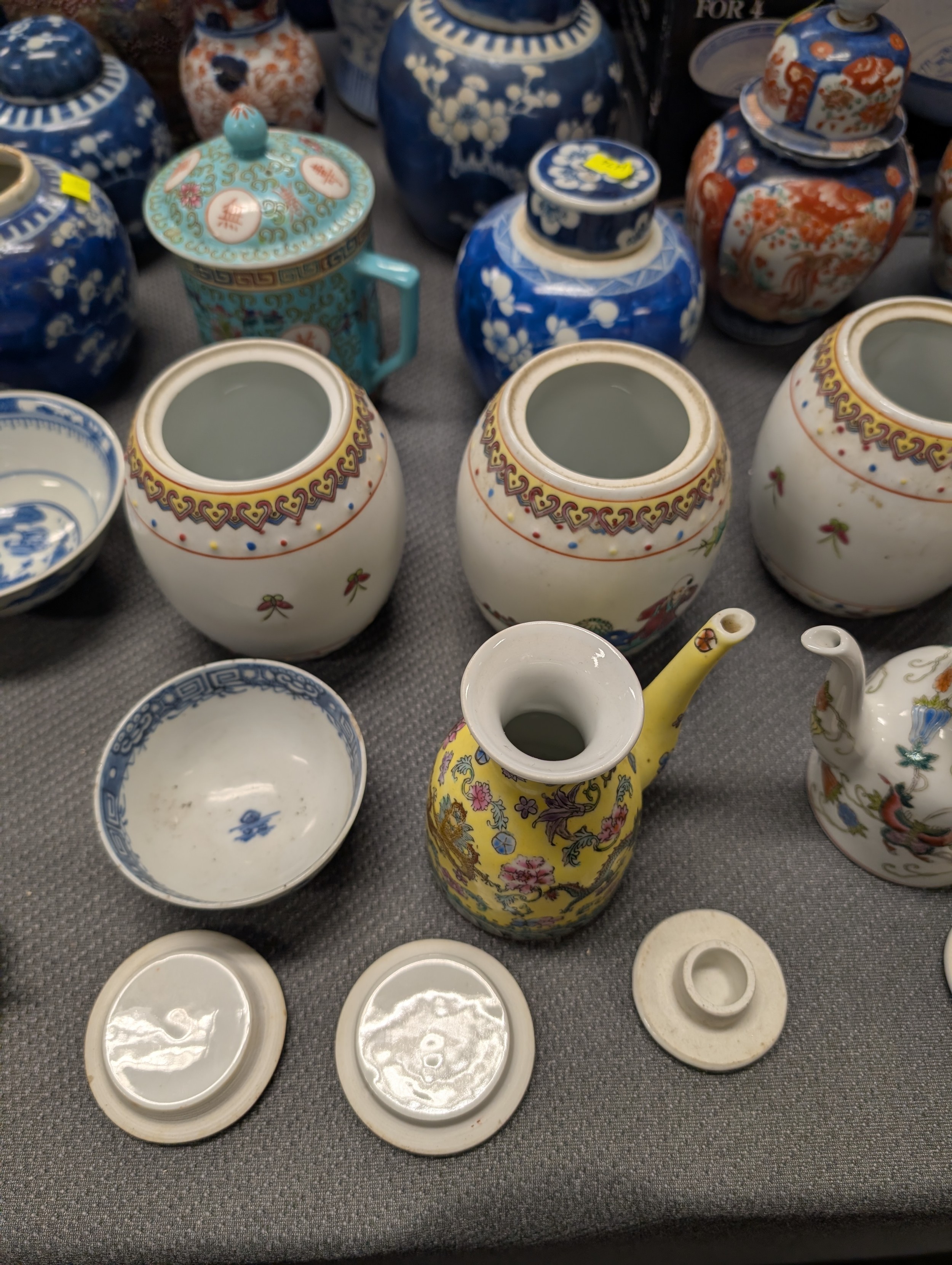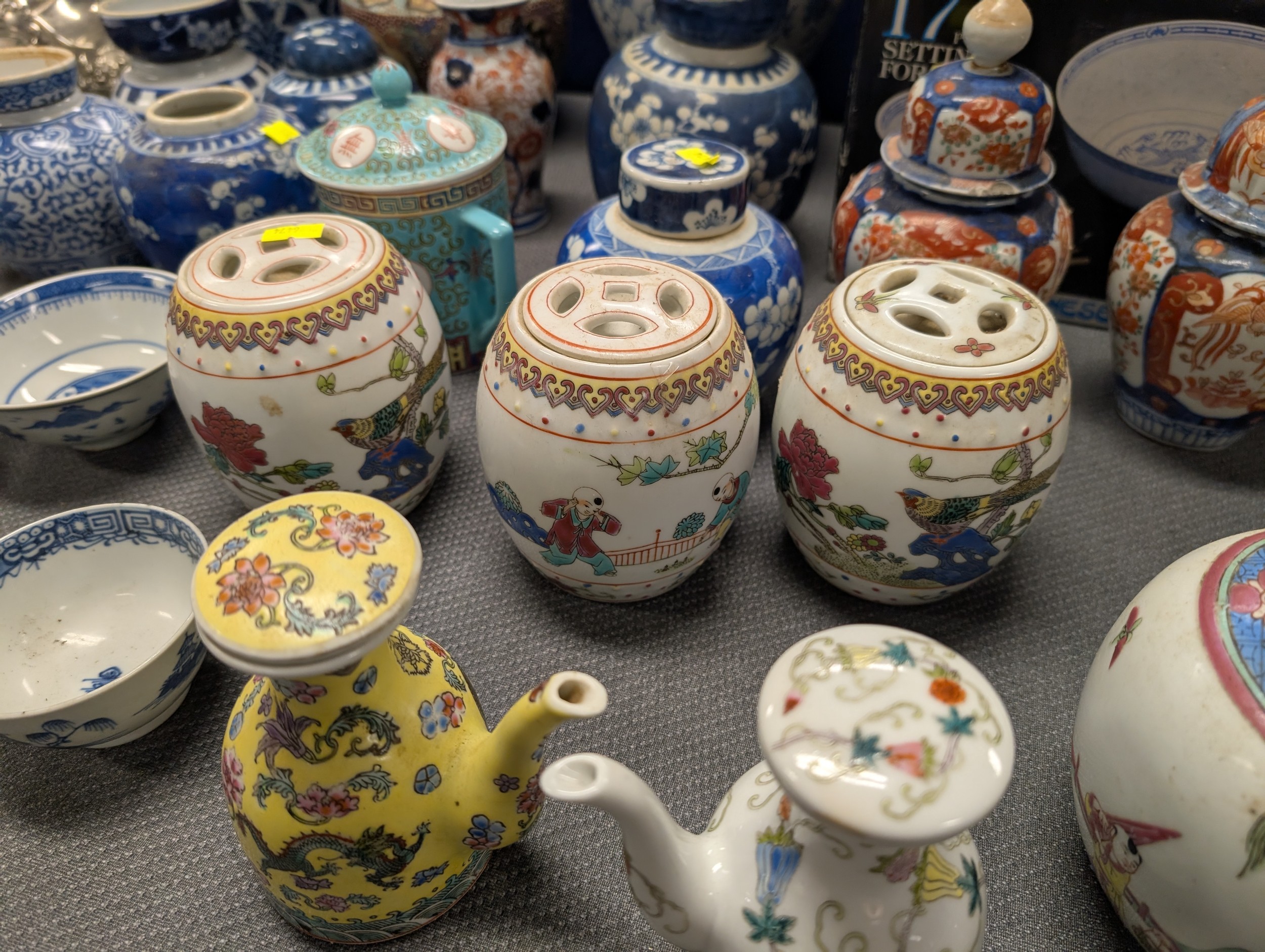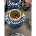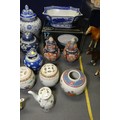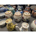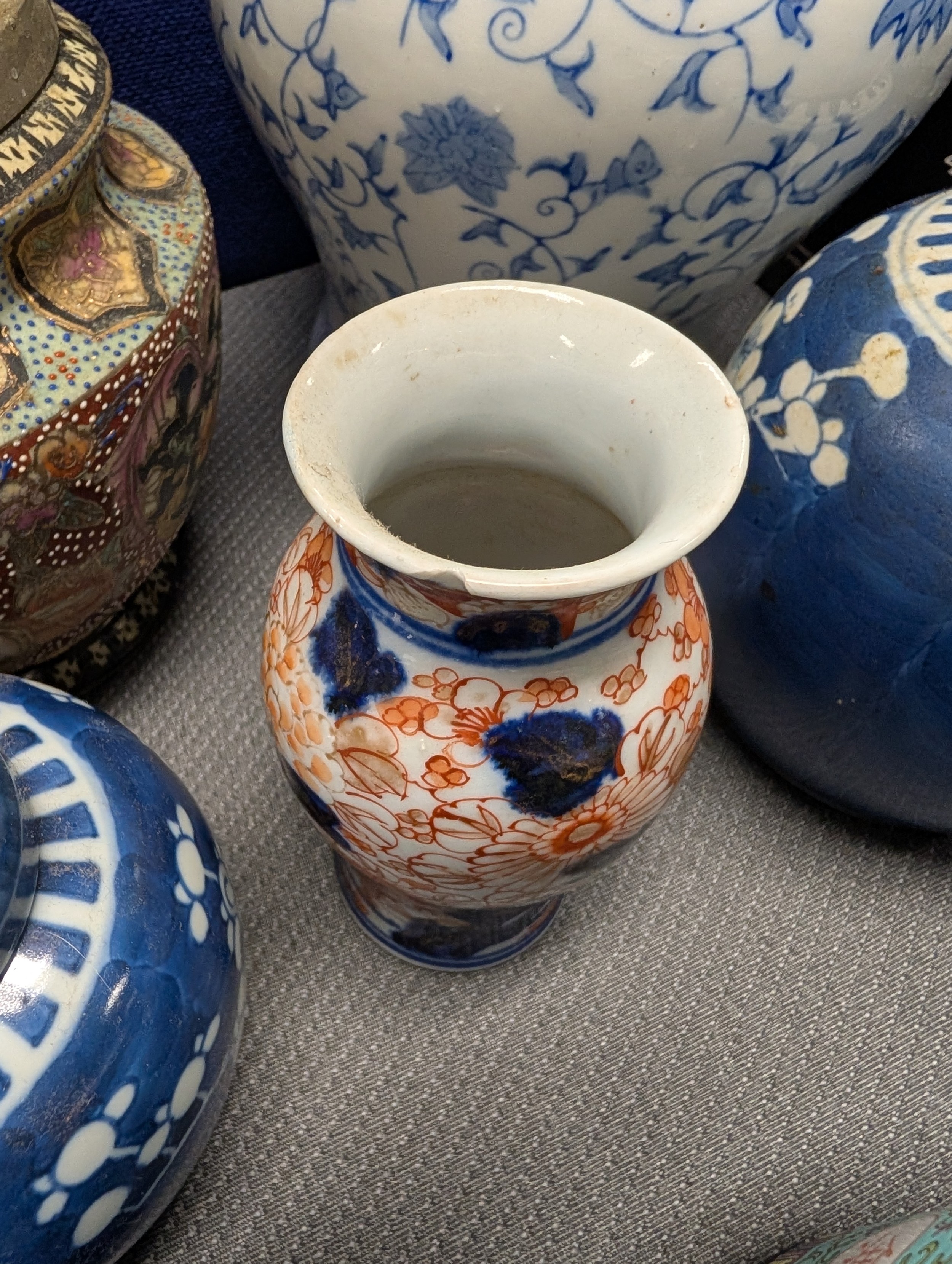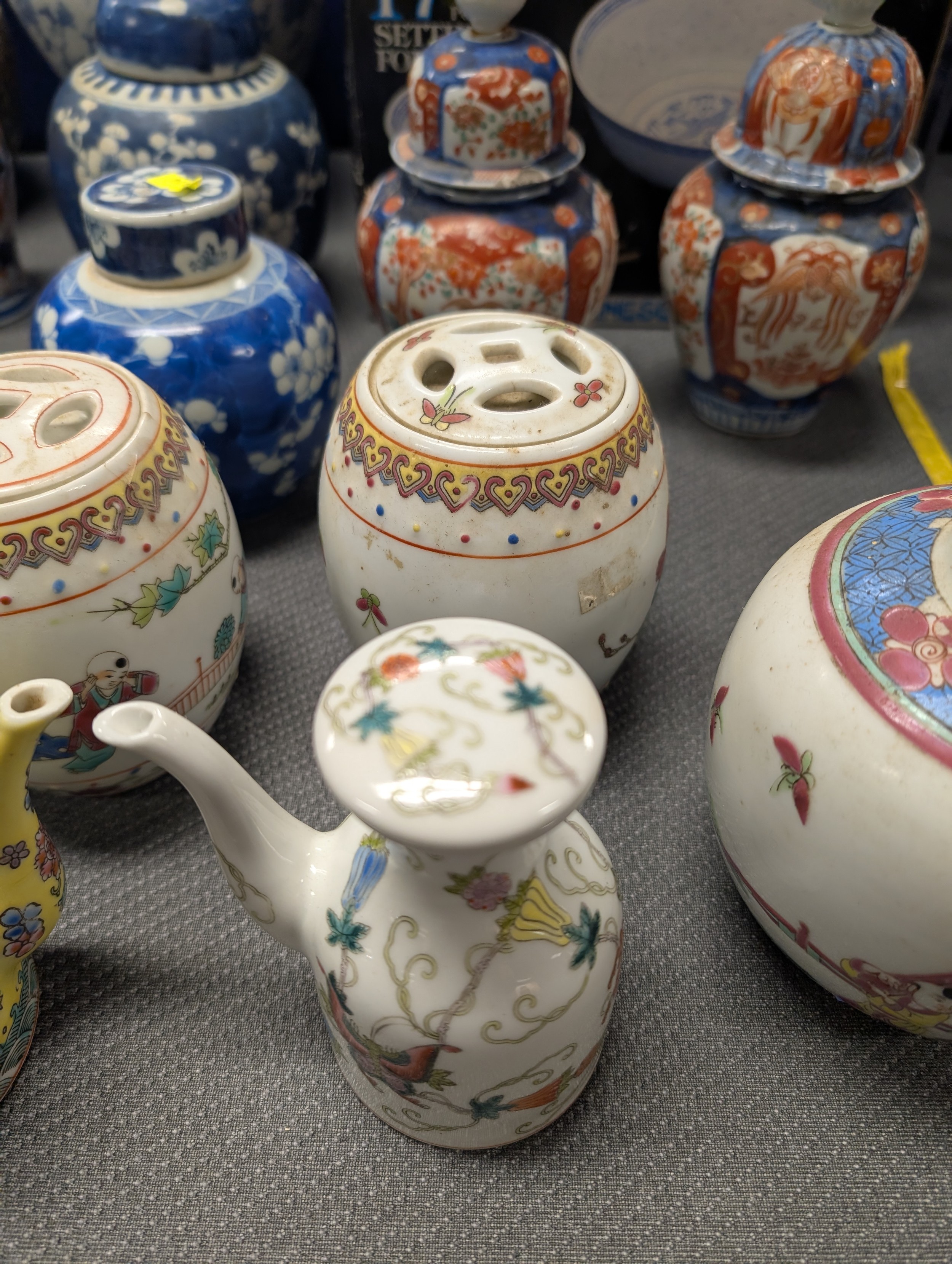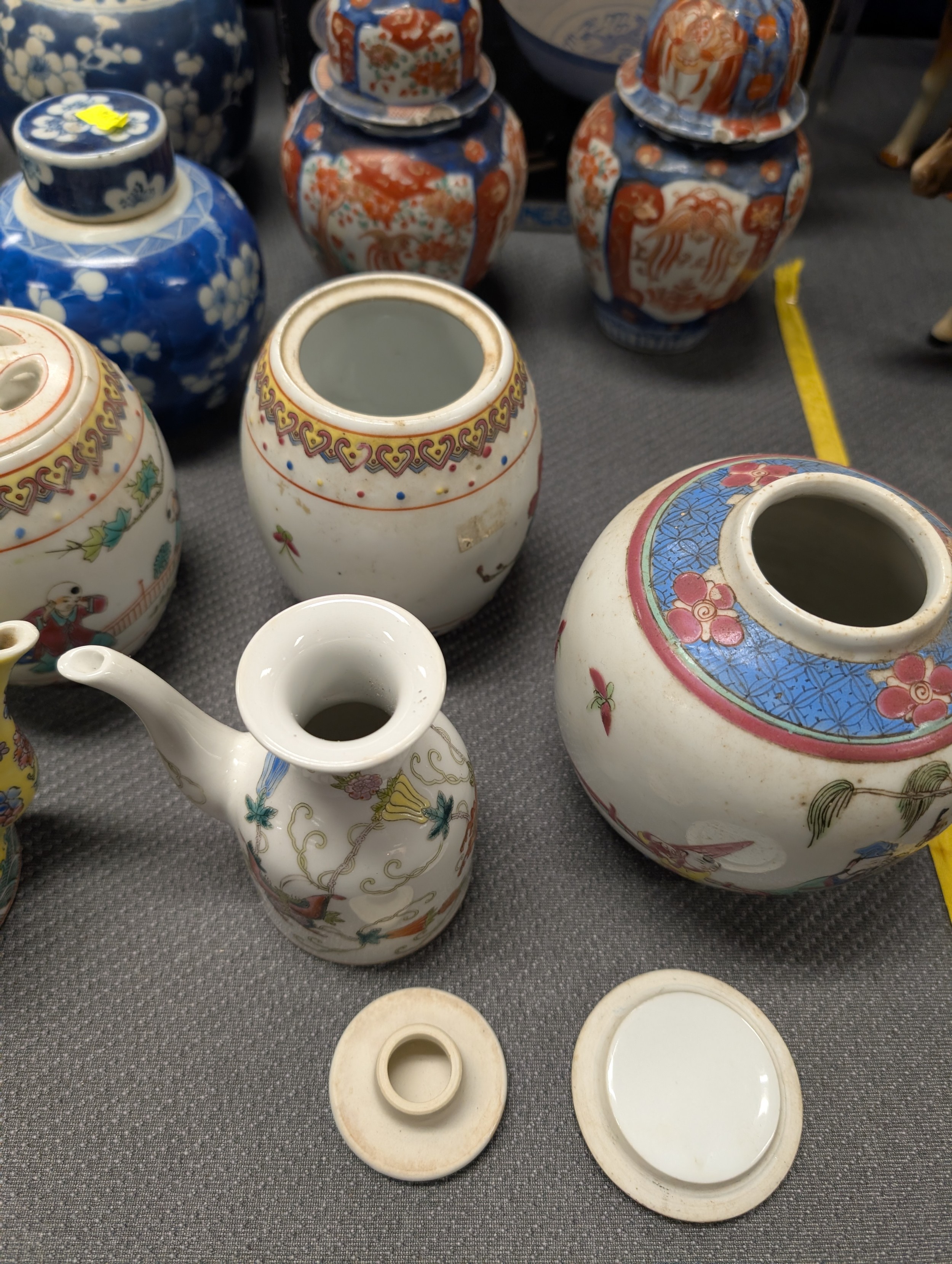 2 Imari jars with covers and a quantity of miscellaneous decorative oriental jars and pots etc