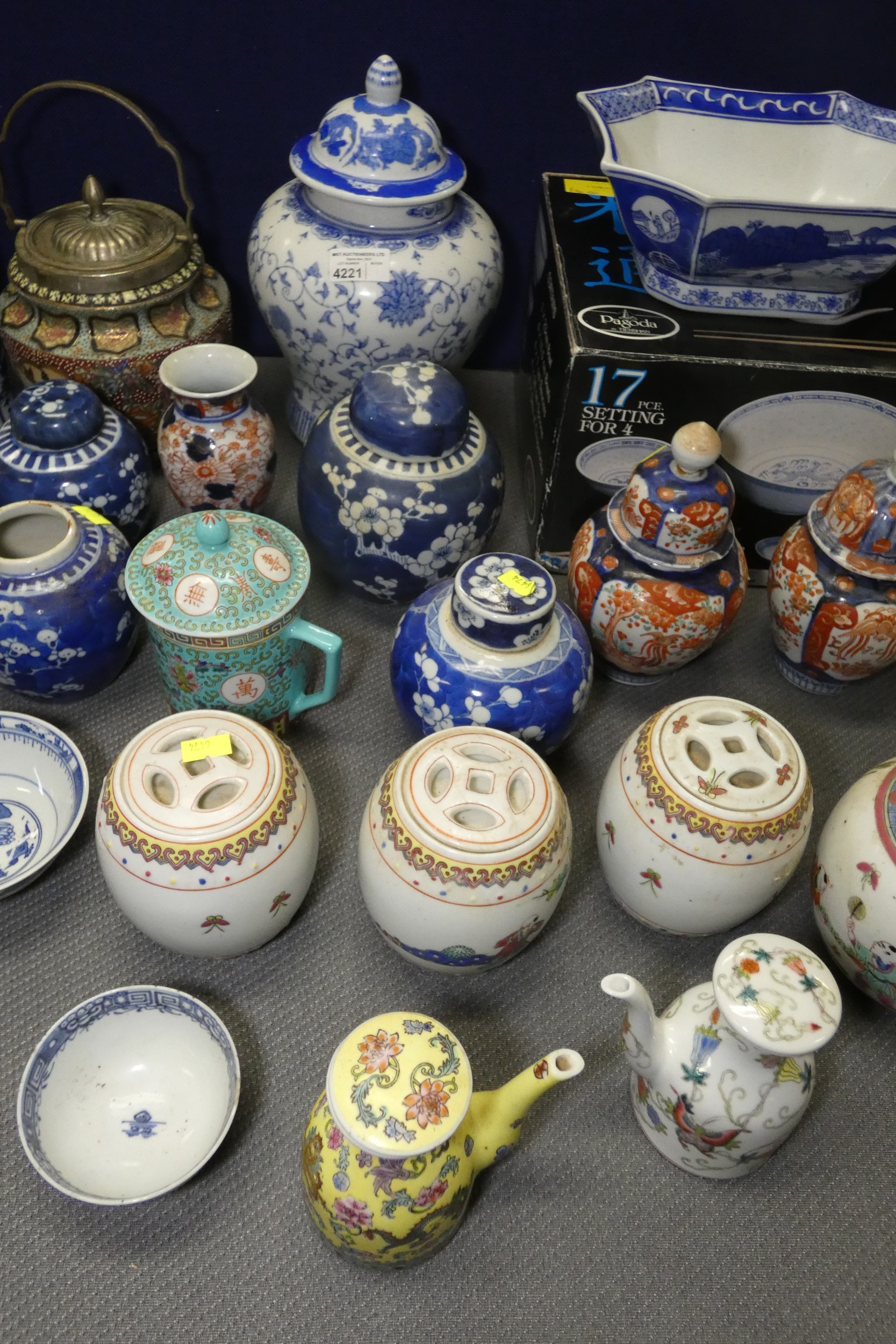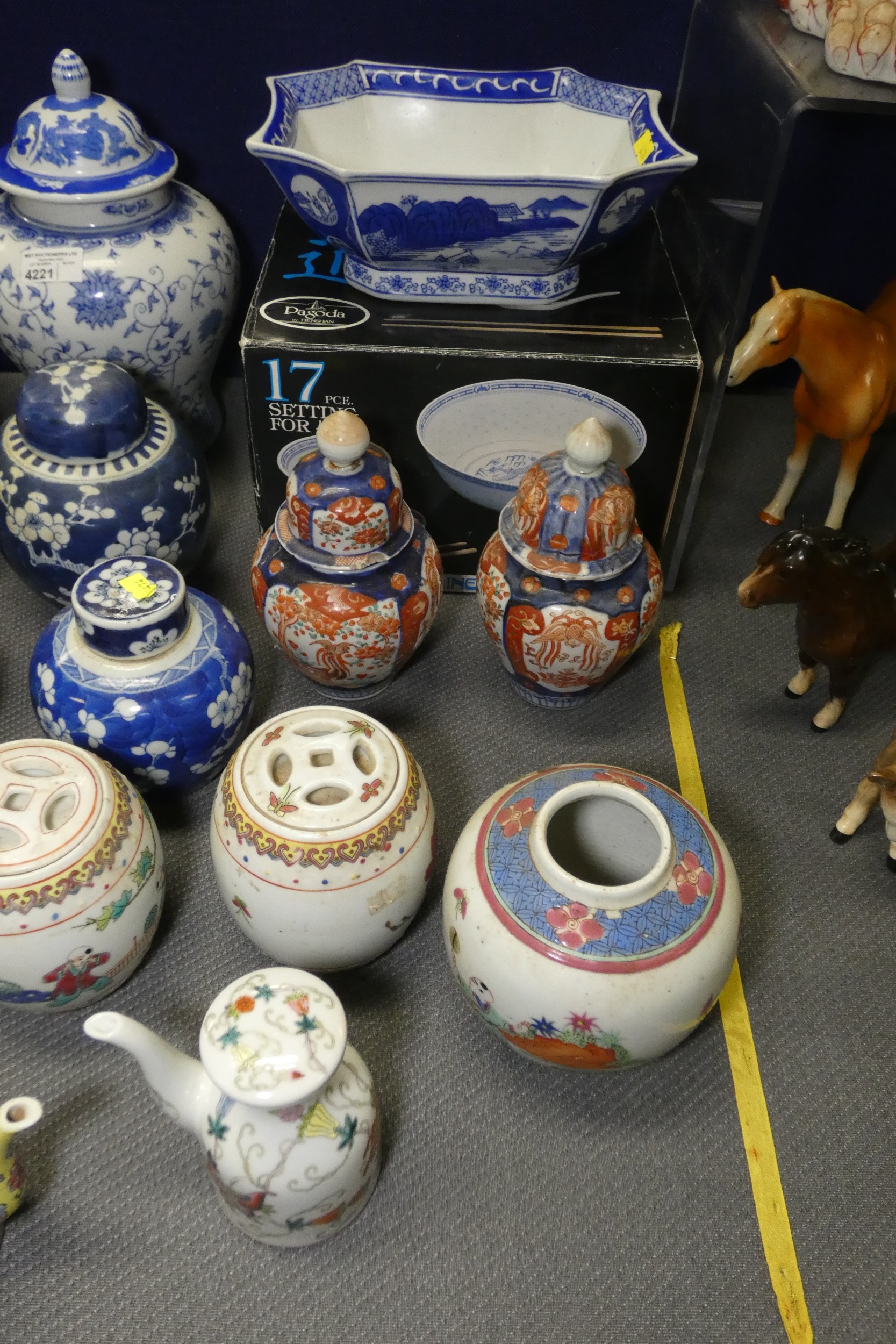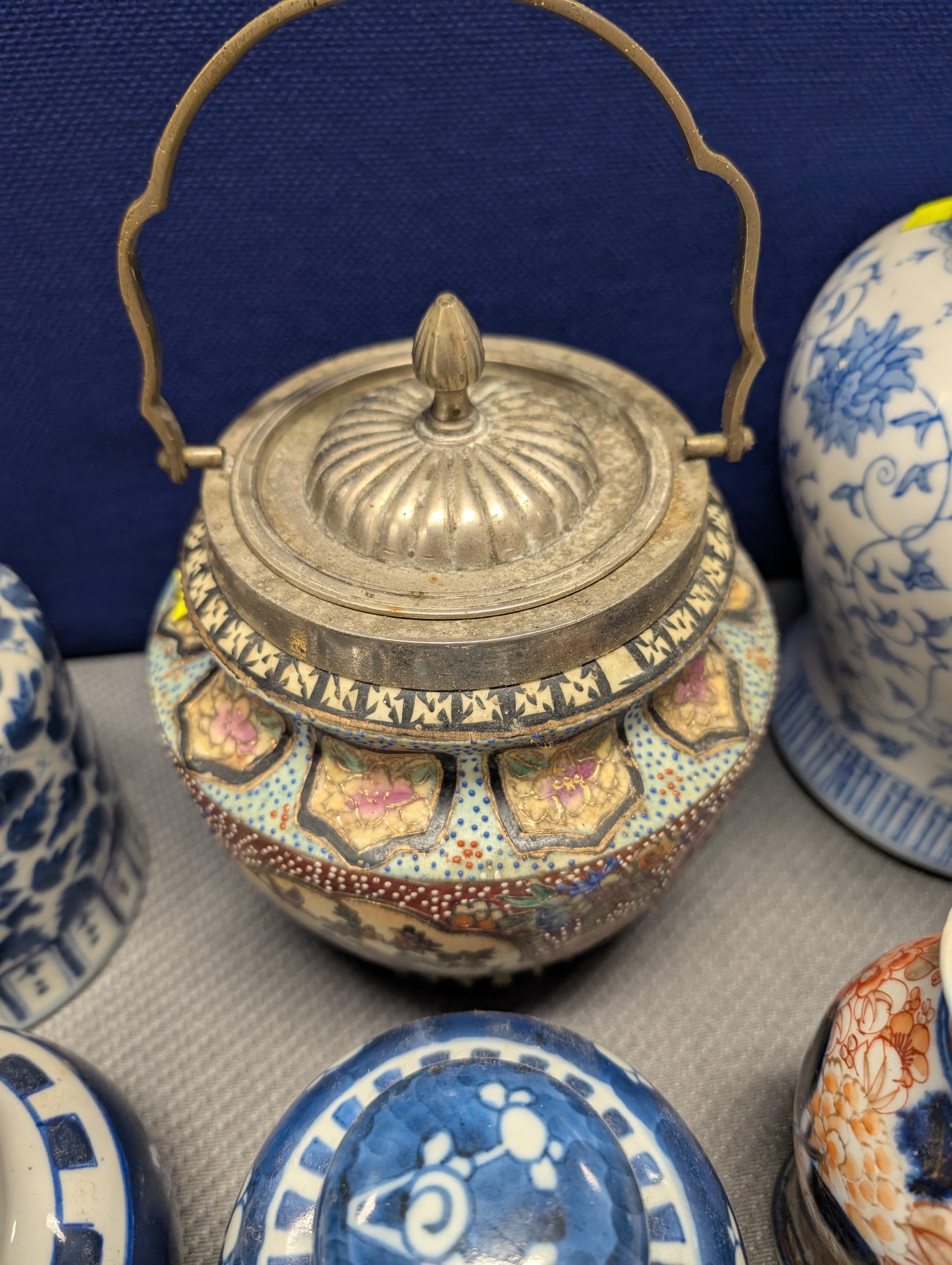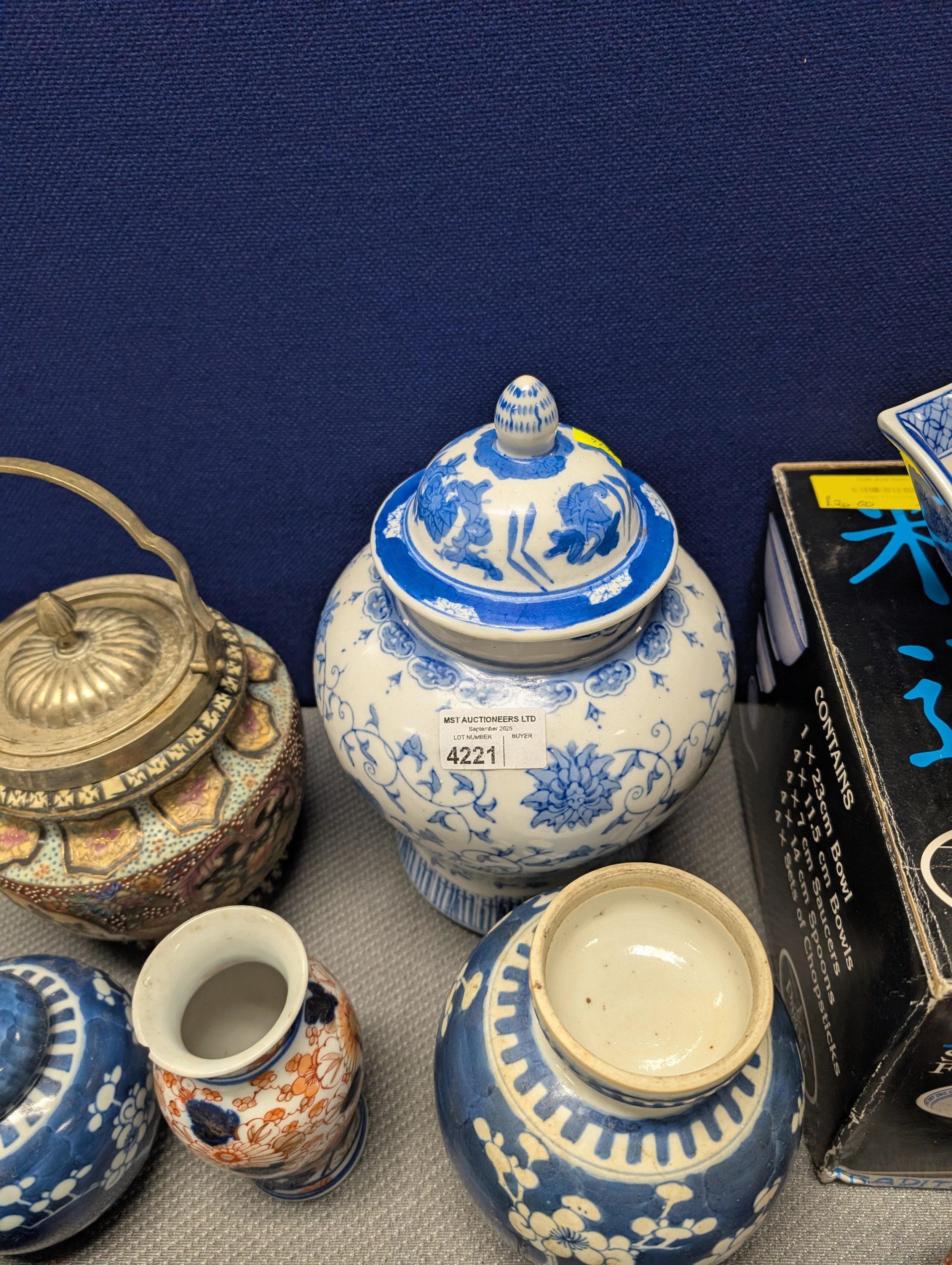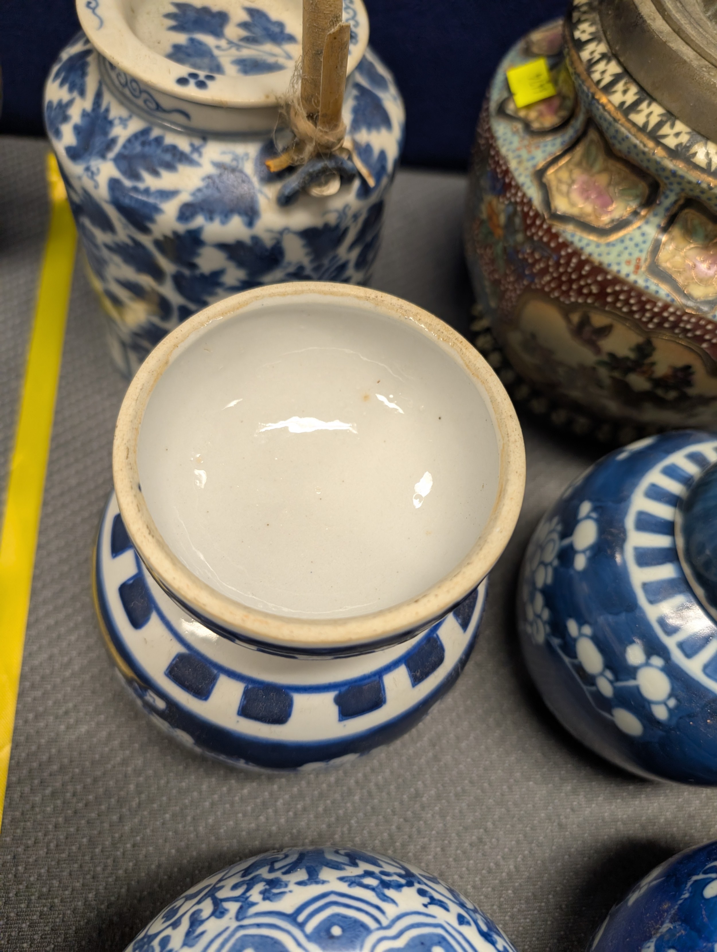 2 Imari jars with covers and a quantity of miscellaneous decorative oriental jars and pots etc