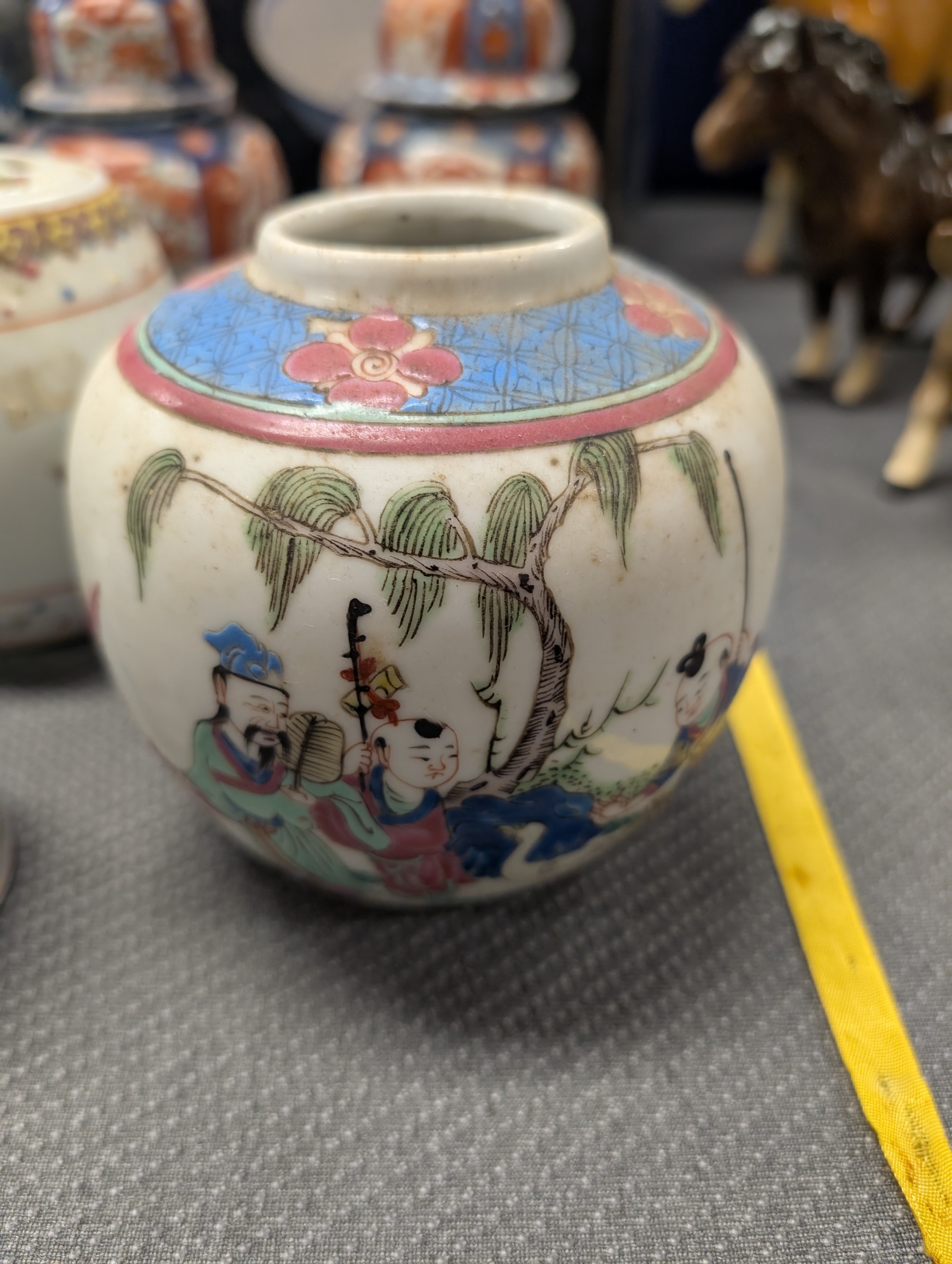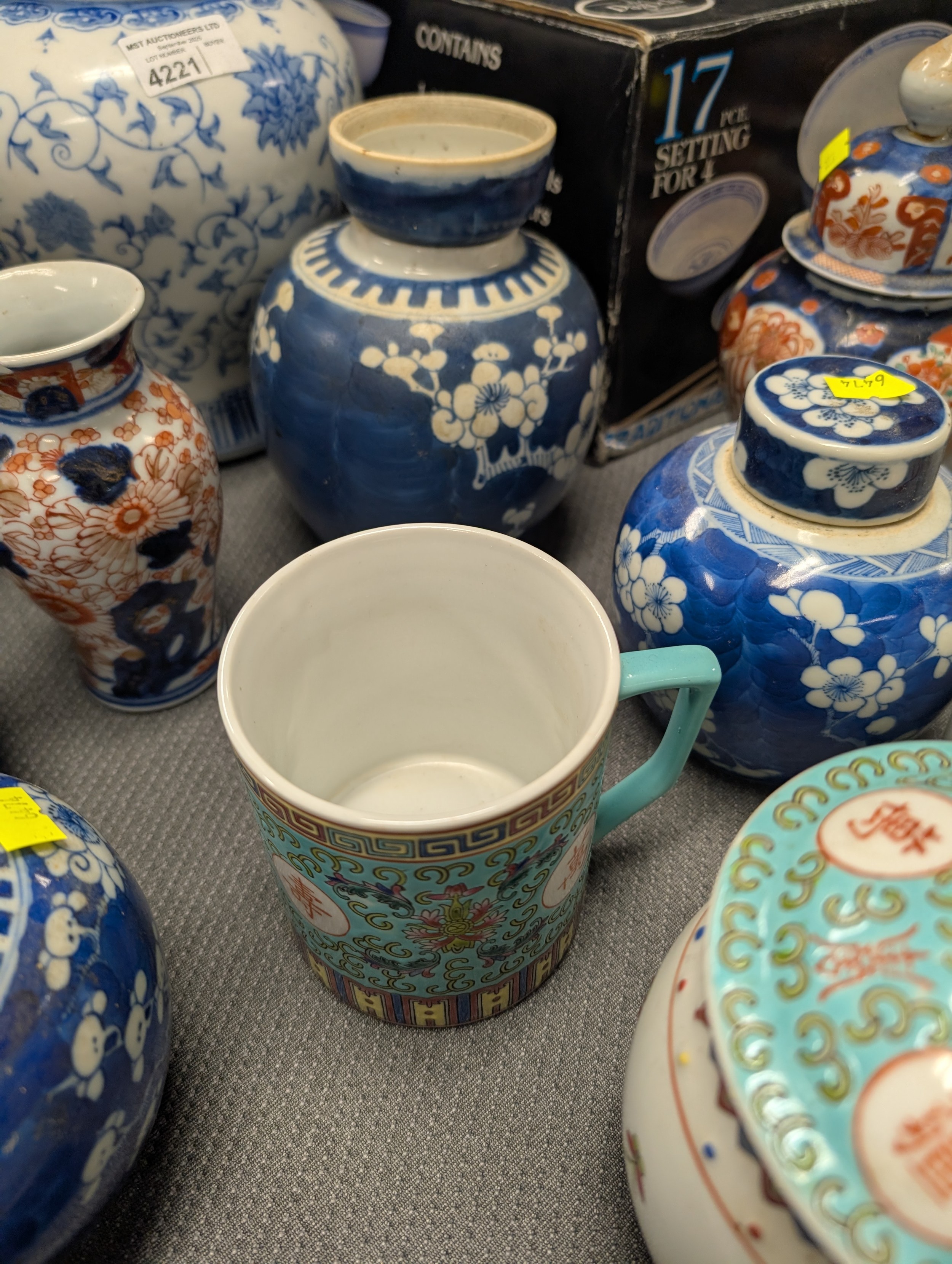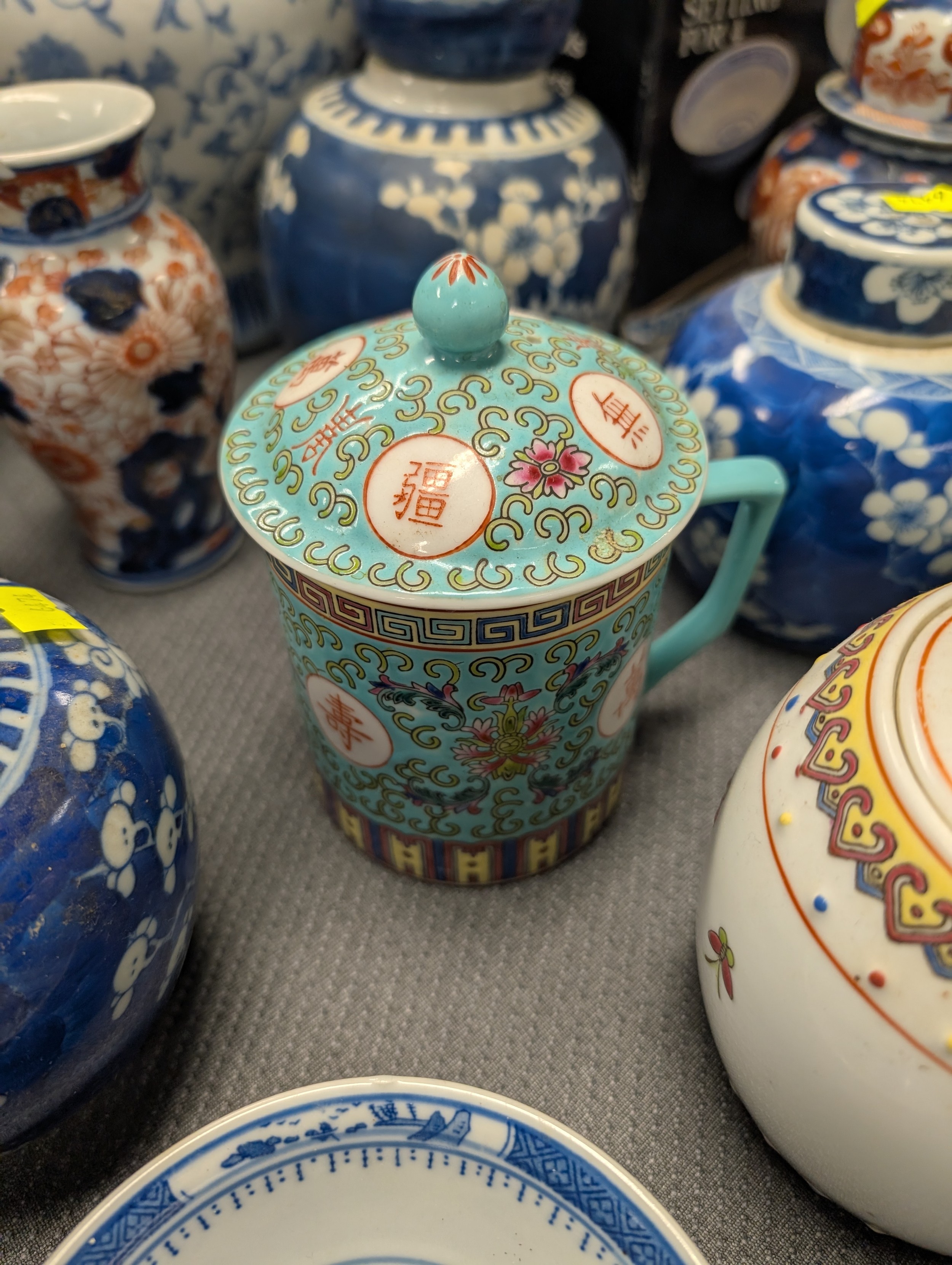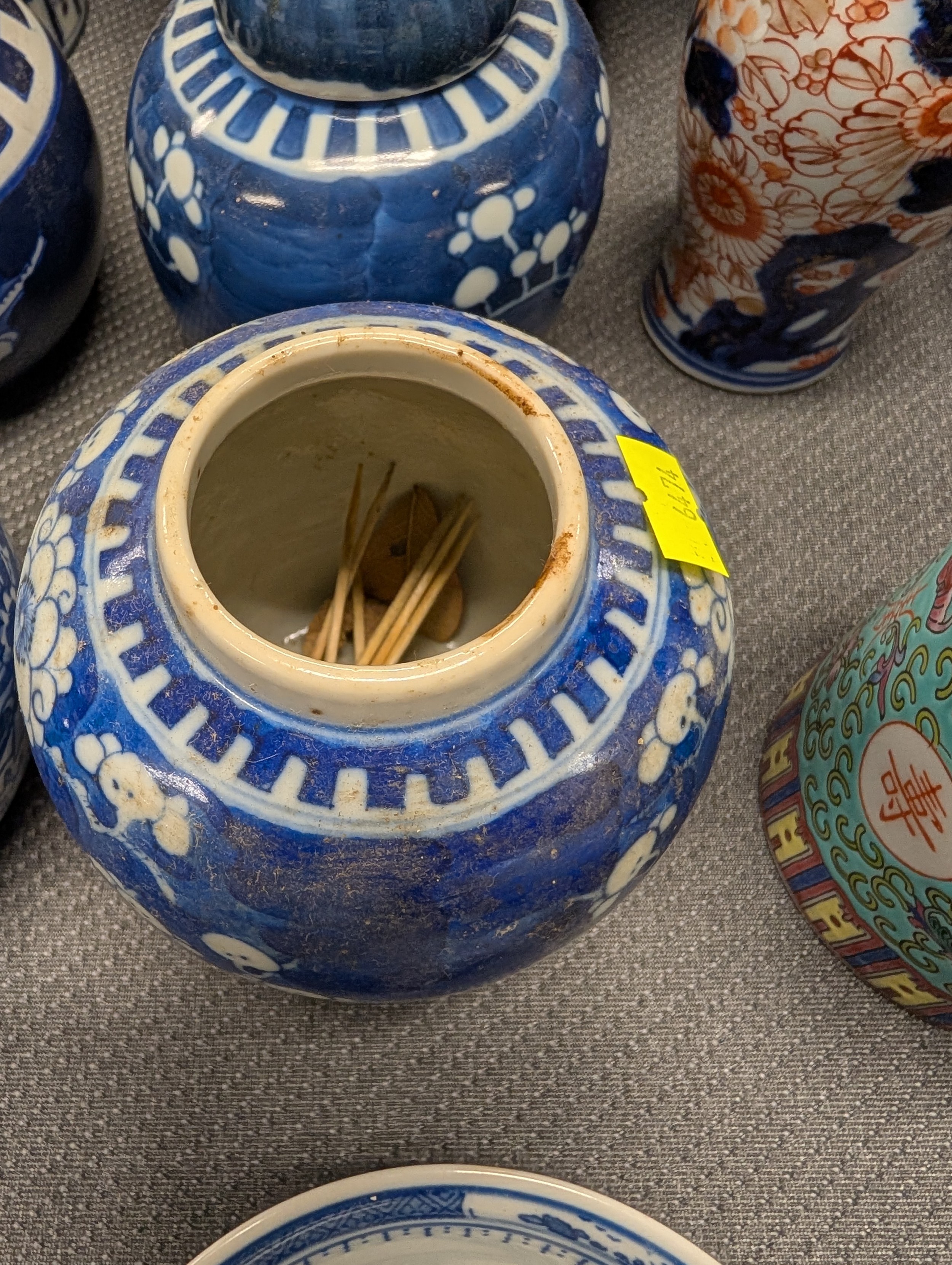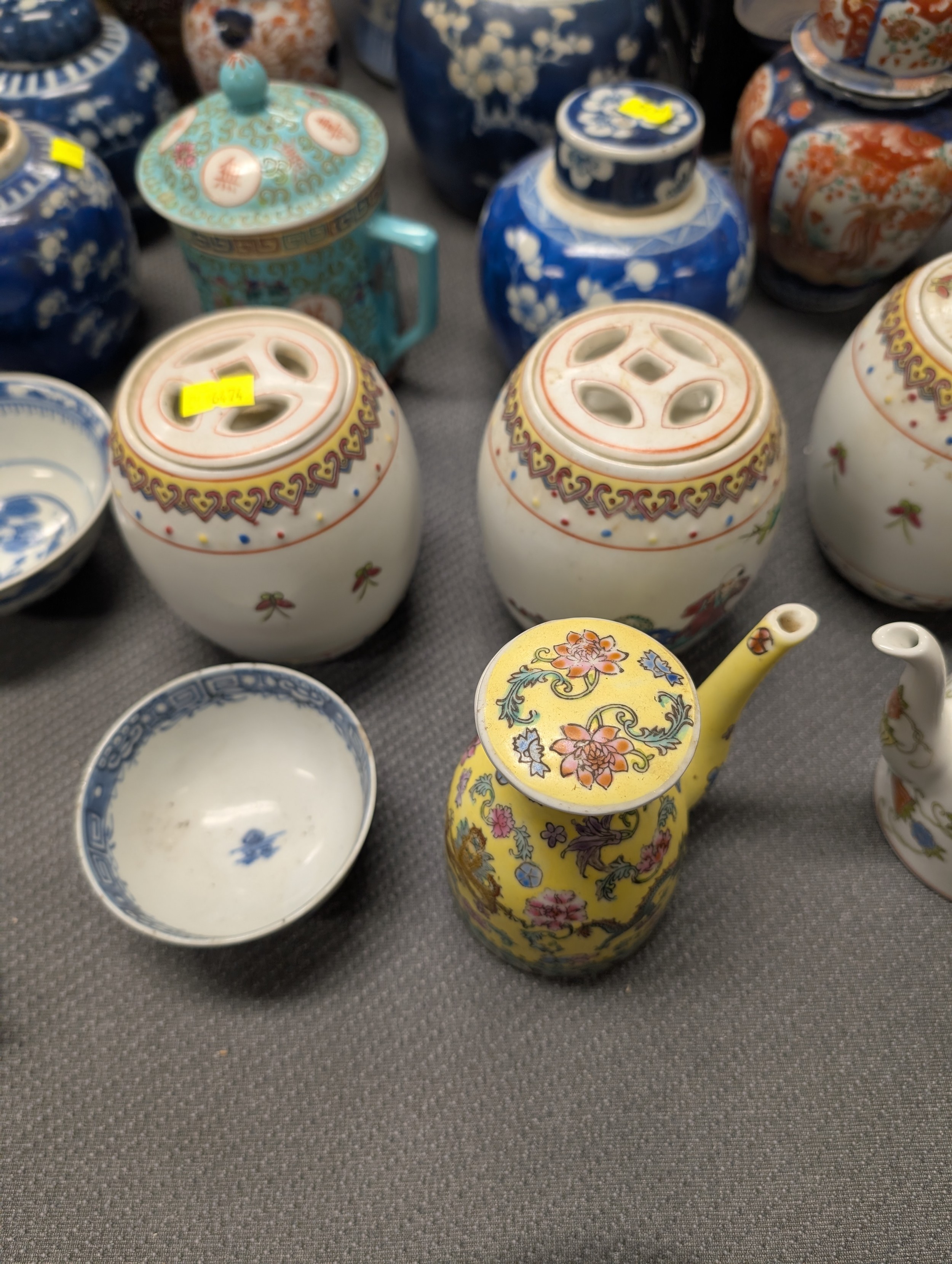 2 Imari jars with covers and a quantity of miscellaneous decorative oriental jars and pots etc