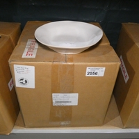 A box containing 12 unused large white pasta bowls by Gray s...