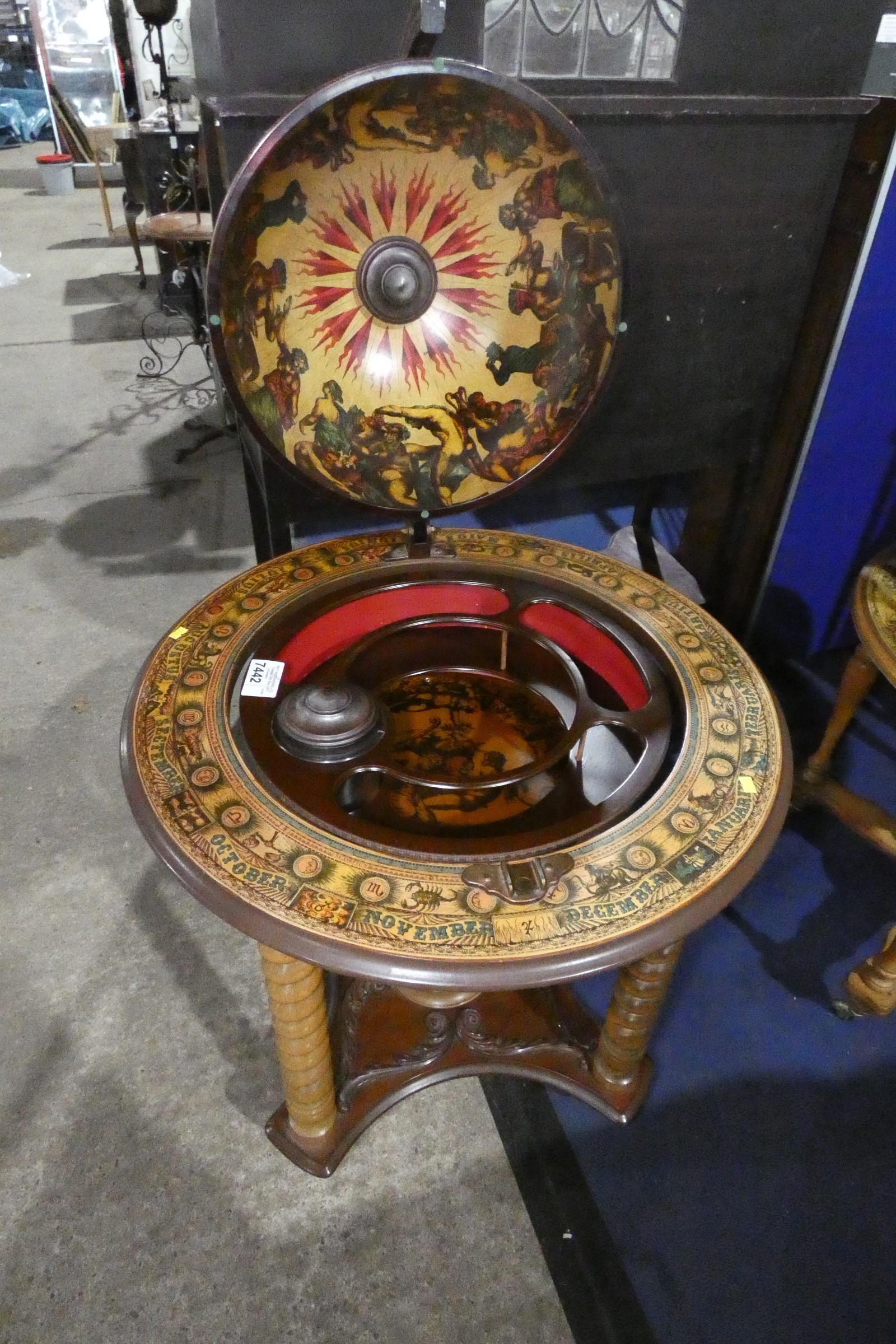 A mid 20th century vintage bar globe drinks/cocktail cabinet, approximately 74 cm diameter